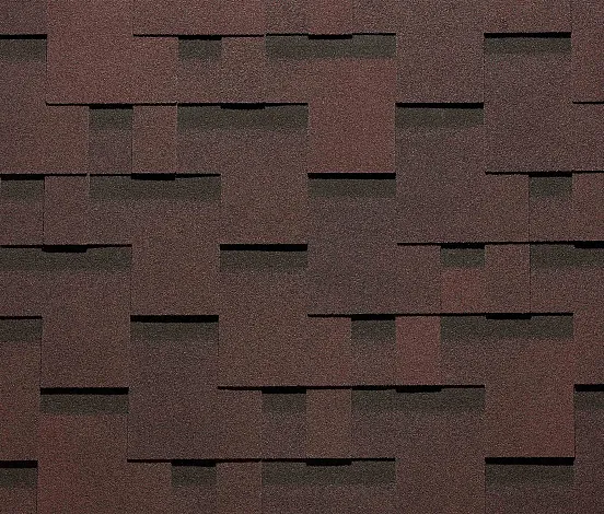 Гибкая черепица Docke PIE PREMIUM коллекция ГЕНУЯ цвет Зрелый каштан отличается формой гонтов в виде ассиметричных прямоугольников (тетрис) с микшированной тенью. Интересно смотрится на кровле. Имеет цветовое затемнение в верхней части гонтов и 3D перелив, что создает имитацию объема.