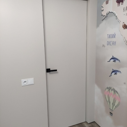 Дверное полотно IFL9 Reverse 59 мм, ДГ, Эмаль 9003, Кромка Хром матовый / Черная, С врезкой под 2 петли HH20 / HH24 и магнитный замок под фиксатор. Кромка с 3х сторон |