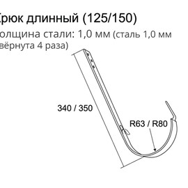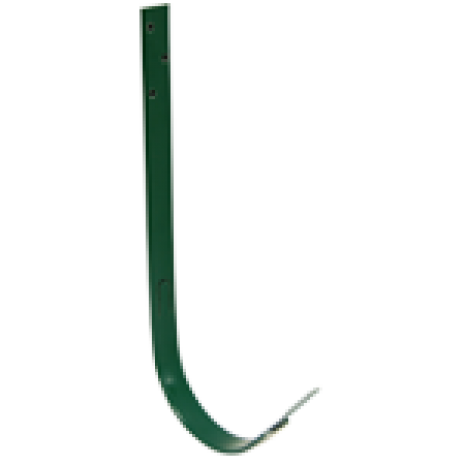 Крюк длинный служит для подвеса желоба на стропила, устанавливается до монтажа кровельного материала. Выполнен из оцинкованной стали с покрытием на основе полиуретана. Облегчает монтаж водосточной системы за счет расположения фиксатора с внешней стороны крюка, что позволяет устанавливать желоб и после монтажа кровельного материала.