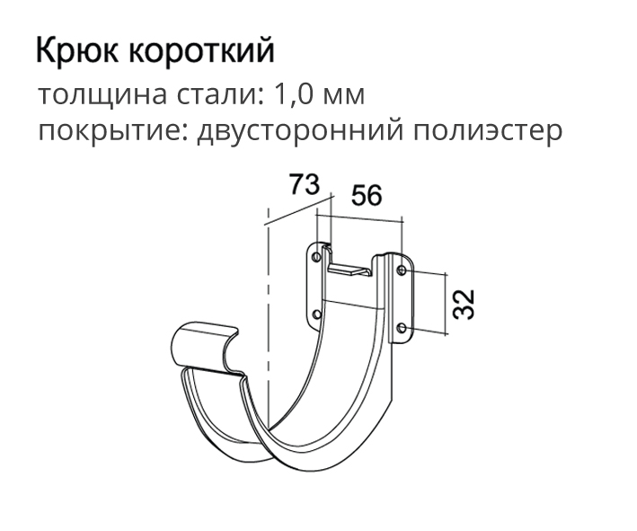 редназначен для крепления желоба на лобовую доску или торцевую часть стропил. Выполнен из оцинкованной стали (толщина 1 мм) с покрытием полиэстер. Не требует демонтажа кровельных листов.