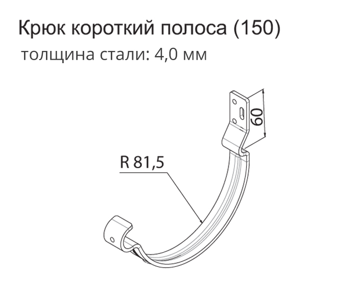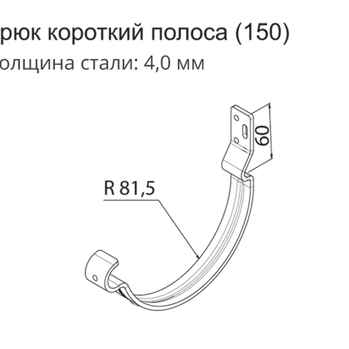 Крюк короткий (полоса) предназначен для крепления желоба на лобовую доску или торцевую часть стропил. Не требует демонтажа кровельных листов.