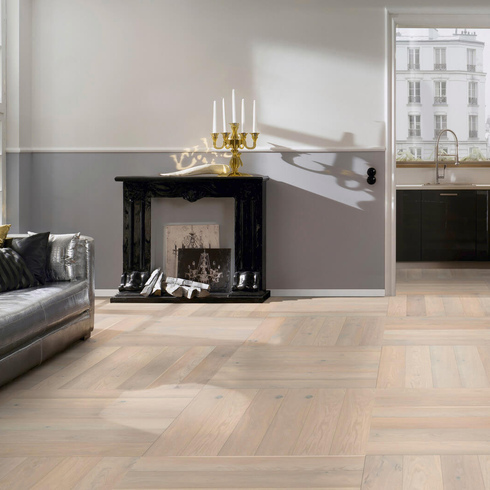 Паркетная доска Ter Hurne Английской Елочкой - воплощение классического паркета. Дополнительная фаска по периметру каждой доски производит особое впечатление. Паркетная доска Ter Hurne Английской Елочкой имеет одинаковый профиль - нет ни правой, ни левой доски, что значительно уменьшает отходы при укладке. Конструкция доски позволяет укладывать в однорядную и двухрядную паркетную доску Английской Елочкой.