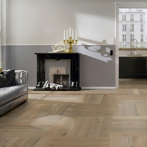 Паркетная доска Ter Hurne Английской Елочкой - воплощение классического паркета. Дополнительная фаска по периметру каждой доски производит особое впечатление. Паркетная доска Ter Hurne Английской Елочкой имеет одинаковый профиль - нет ни правой, ни левой доски, что значительно уменьшает отходы при укладке. Конструкция доски позволяет укладывать в однорядную и двухрядную паркетную доску Английской Елочкой.