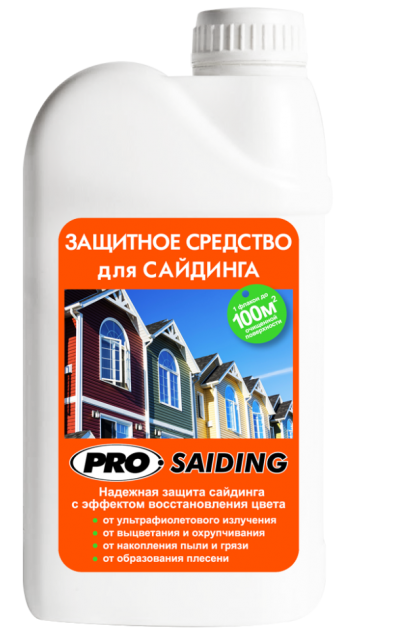 Инновационное защитное средство - импрегнант для сайдинга.Обеспечивает защиту поверхности от разрушительного воздействия солнечных лучей, накопления пыли и грязи на поверхности, а также от образования плесени и других микроорганизмов. Средний расход 1л средства на 100 кв.м.